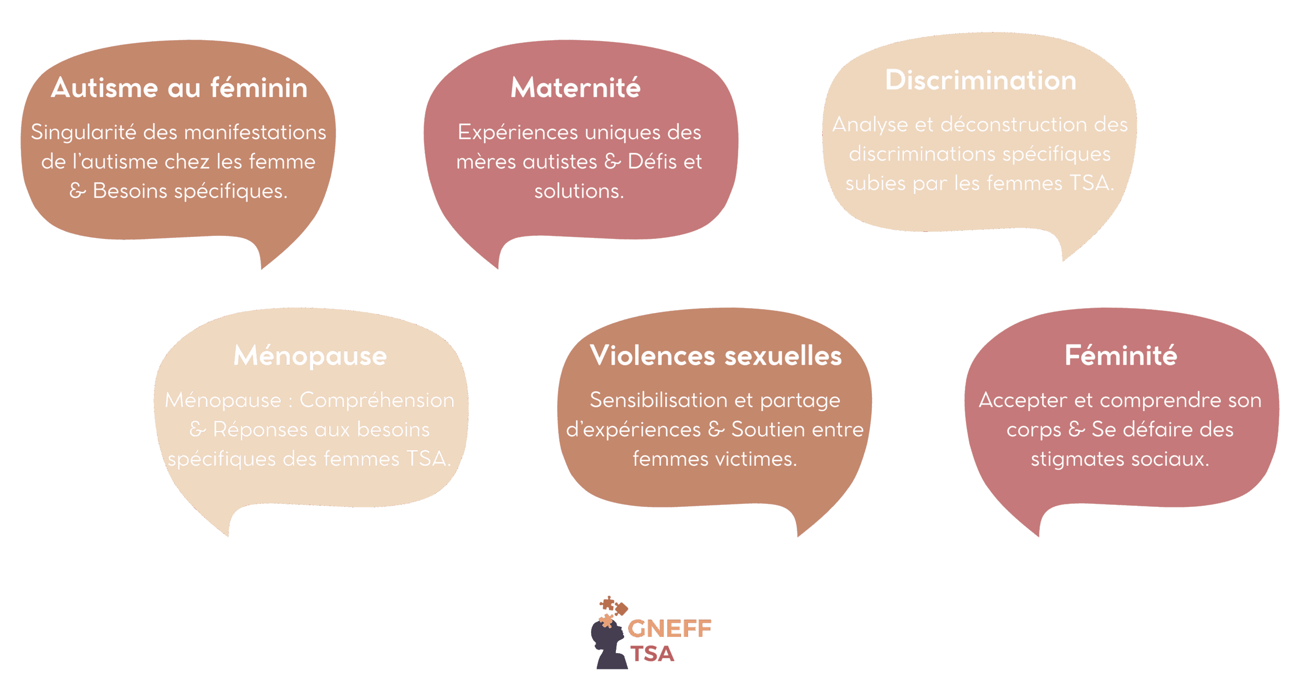 Face à l’invisibilisation des réalités spécifiques vécues par les femmes TSA, nous avons décidé de créer un espace non mixte, bienveillant et sécurisant, où chacune peut s’exprimer, être écoutée et soutenue.